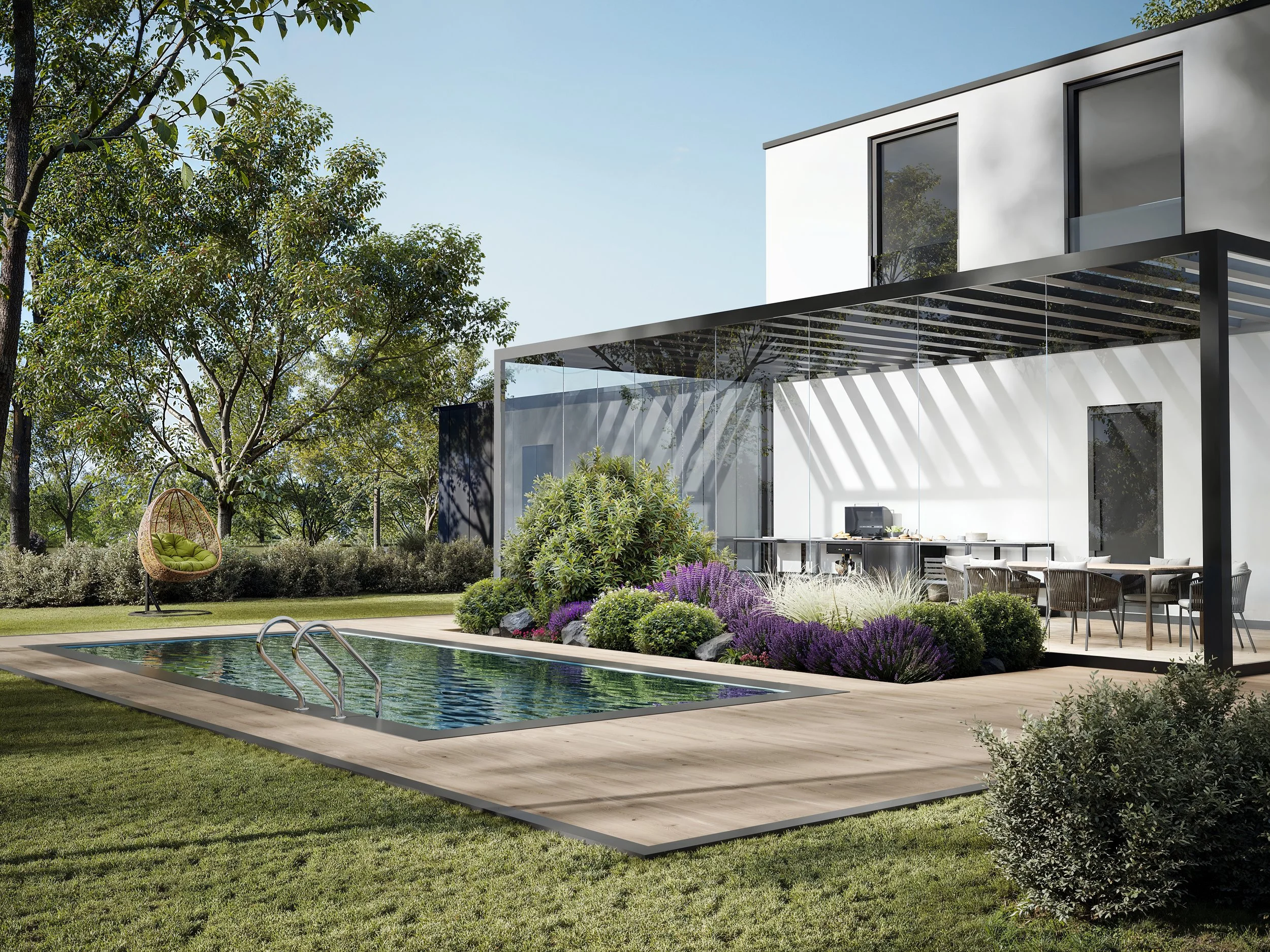 Portfolio Lush Forest Hideaway Hillside Residences Balanced Bedroom Softline Interiors Solmist Hillside Villa Urban Layers Soft Minimal Kitchen Quiet Poolside Palm Retreat Villa Calm Living Room Concept Patio & Pool Concept