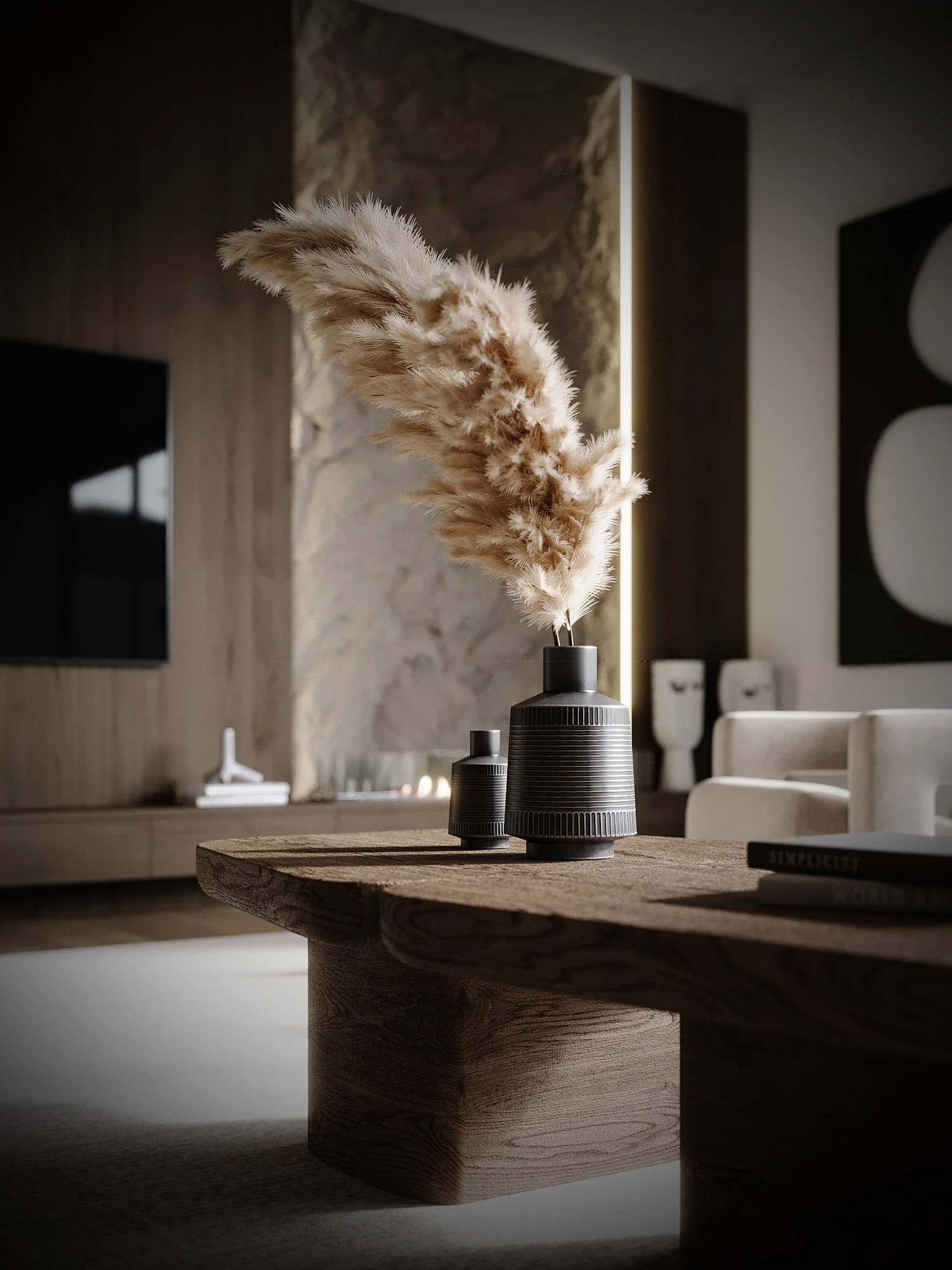 High-detail visualizations of interior spaces with refined lighting, materials and decor.
